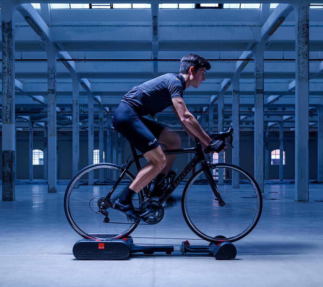 Quick-Motion combines freedom of movement, control, and stability. The floating frame reduces inertial forces during pace changes, accompanying the bike’s motion as you pedal. The parabolic rollers guide the wheel toward the center, helping you work on technique, balance, and precision.