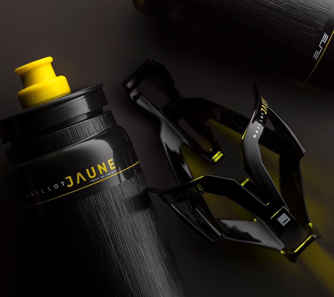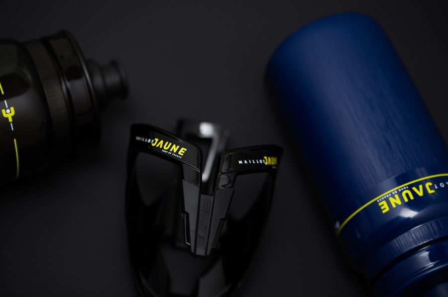 Le Kit Maillot Jaune Limited Edition réunit deux objets techniques parmi les plus choisis par les équipes WorldTour : le bidon Fly Tex et le porte-bidon Custom Race Plus.