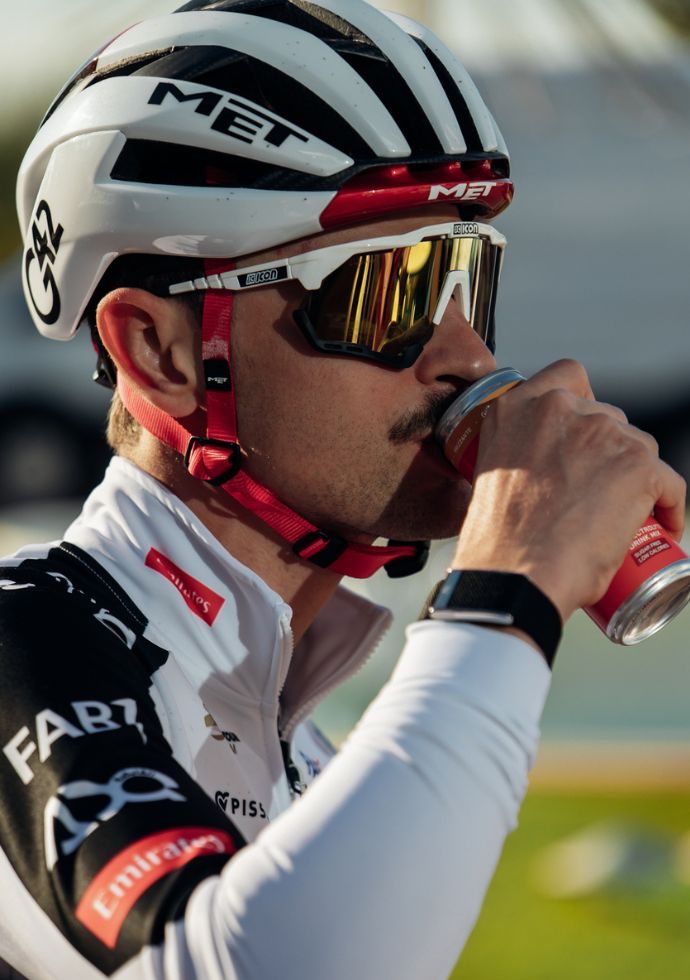 "Il ciclismo è uno sport di situazione. Il meteo avverso, il tracciato, le situazioni di corsa possono far dimenticare di mangiare e bere regolarmente, portando a cali di energia difficili da recuperare." — Gorka Prieto-Bellver nutrizionista UAE Emirates